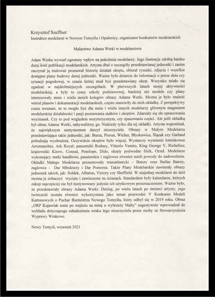 Po śmierci Artysty, jak się okazało, miłośnicy jego twórczości, nie zapomnieli o nim. Po założeniu w 2017 roku, Fundacji im. Adama Werki a także po uruchomieniu fb poświęconego Adamowi Werce, zaczęły znowu napływać liczne listy i maile. Niektóre z nich zamieszczamy poniżej.
