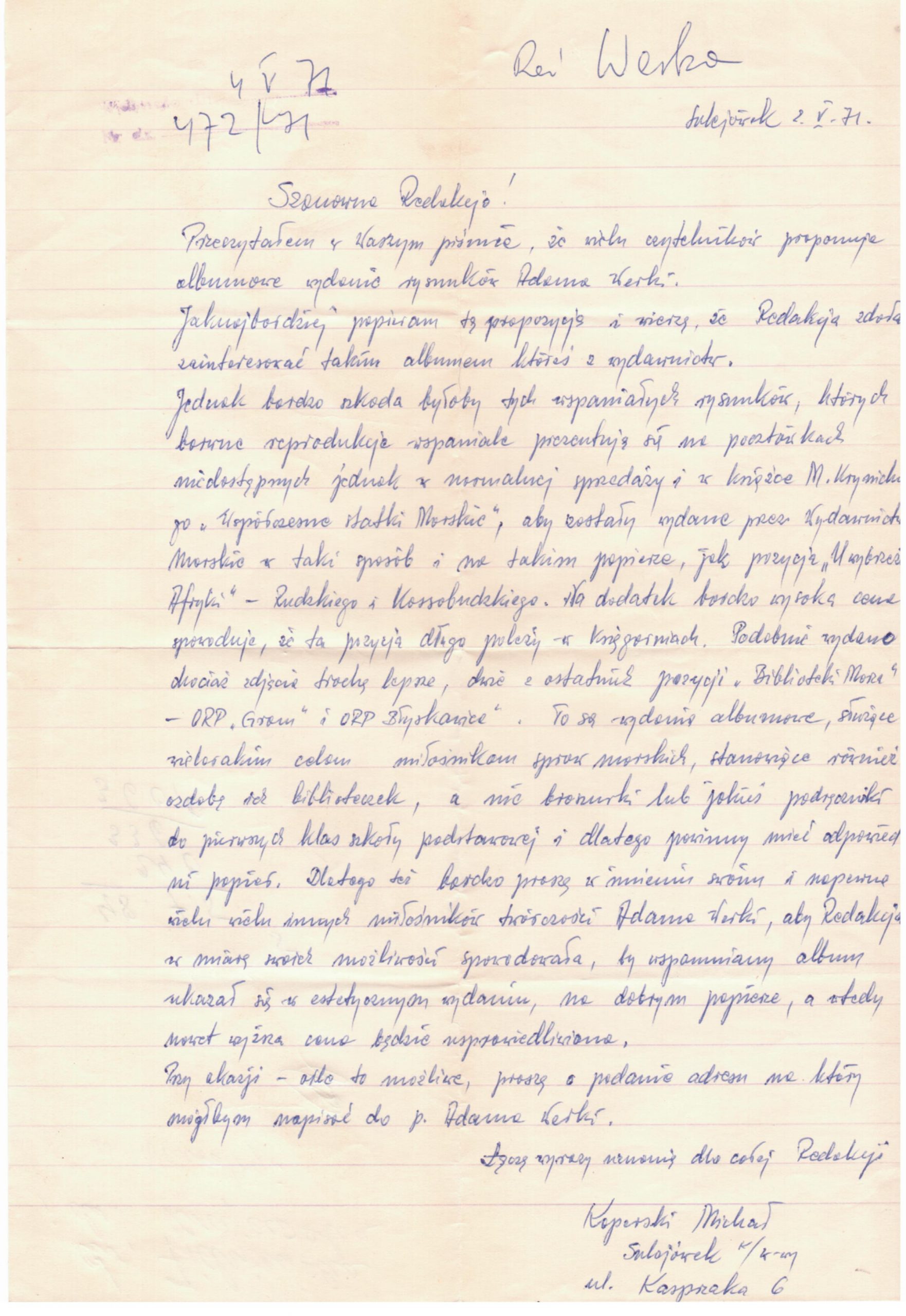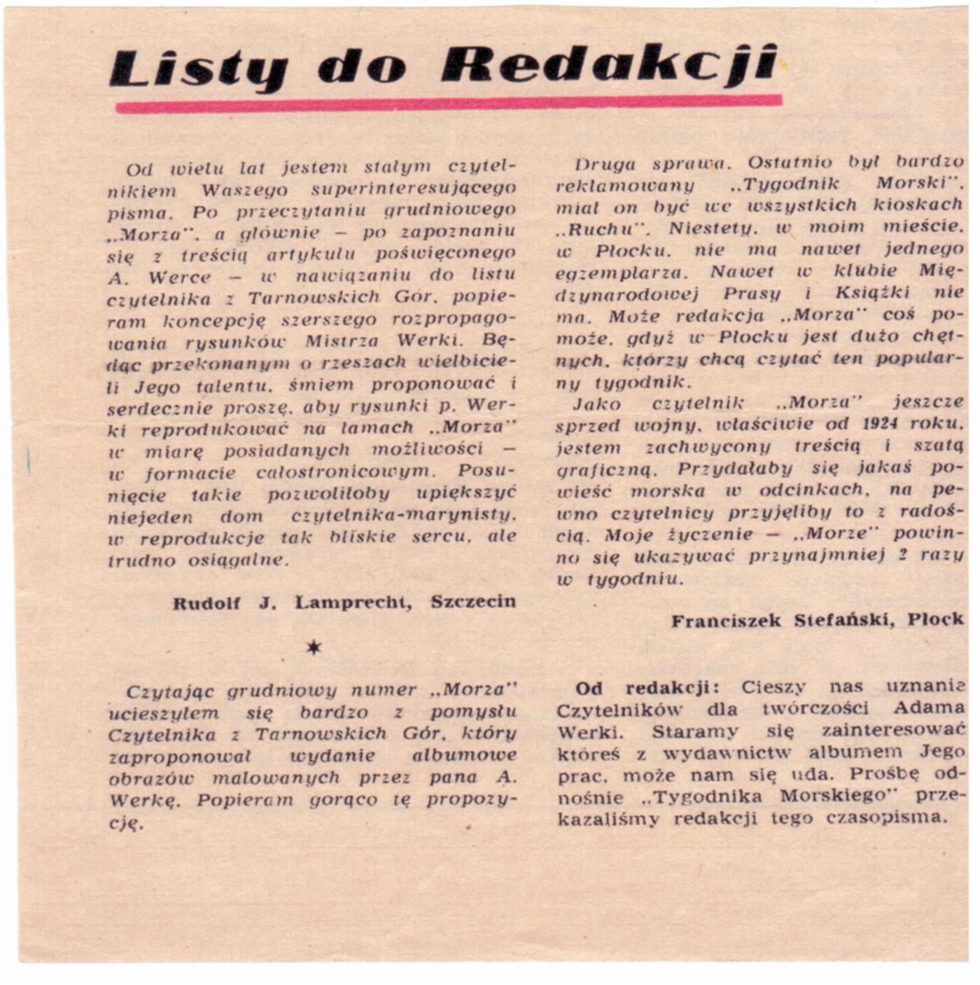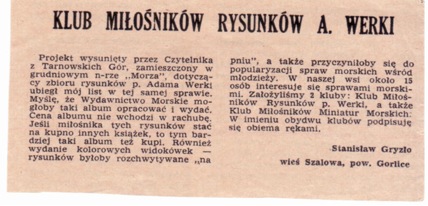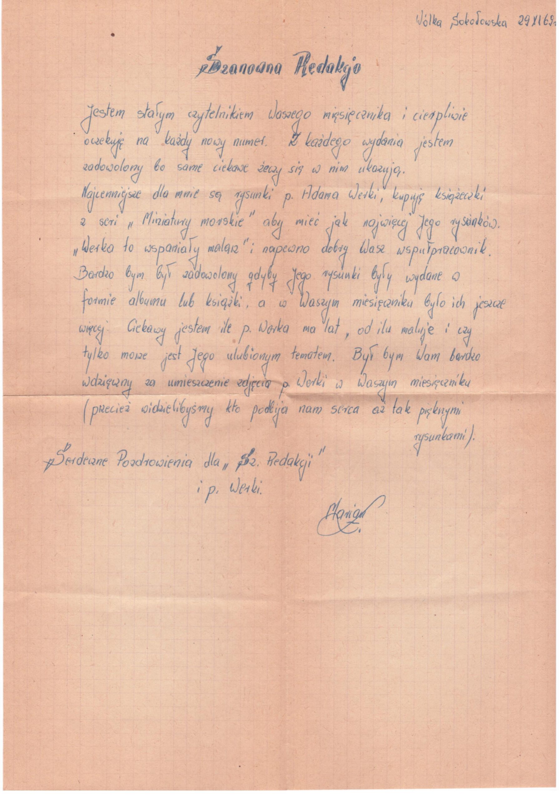 Adam Werka cieszył się dużą popularnością. Świadczą o tym liczne listy, które napływały w latach 70- 90- XX wieku, głównie do Redakcji czasopisma “Morze”. Były to zarówno listy od osób dorosłych jak i dzieci i młodzieży.
