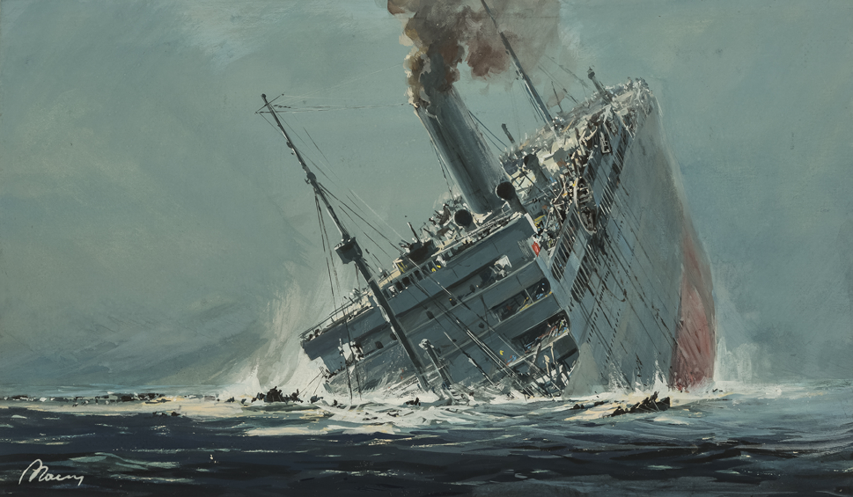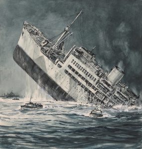 Belgijski transportowiec wojska „Leopoldville”, storpedowany u wybrzeży Normandii 24 grudnia 1944 roku przez niemiecki okręt podwodny U-48