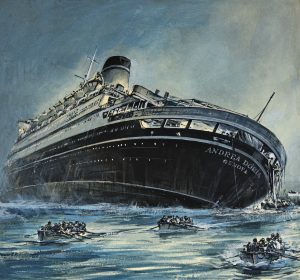 Tragiczny finał nocnej kolizji włoskiego transatlantyku „Andrea Doria” ze szwedzkim statkiem pasażerskim „Stockholm” (25 lipca 1956 roku) w pobliżu amerykańskiej wyspy Nantucke