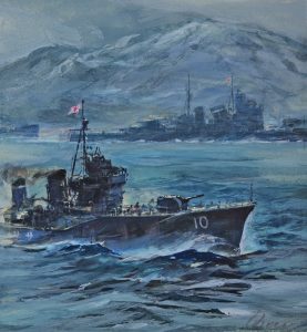 Nocna koncentracja japońskich okrętów wojennych podczas II wojny światowej. Na pierwszym planie niszczyciel typu Fubuki.