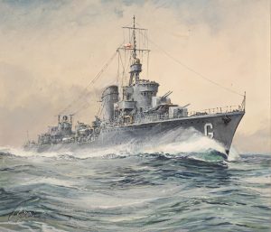 Polski kontrtorpedowiec ORP „Grom” w drodze z Cowes w Wielkiej Brytanii do Gdyni (rok 1937). Okręt został zatopiony przez niemieckie lotnictwo na norweskich wodach Rombakenfjordu 4 maja 1940 roku.