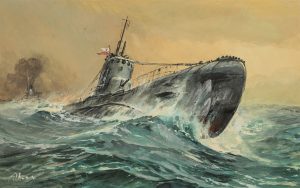 Polski okręt podwodny ORP „Orzeł” oddala się z miejsca zatopienia niemieckiego transportowca „Rio de Janeiro” w dniu 8 kwietnia 1940 roku